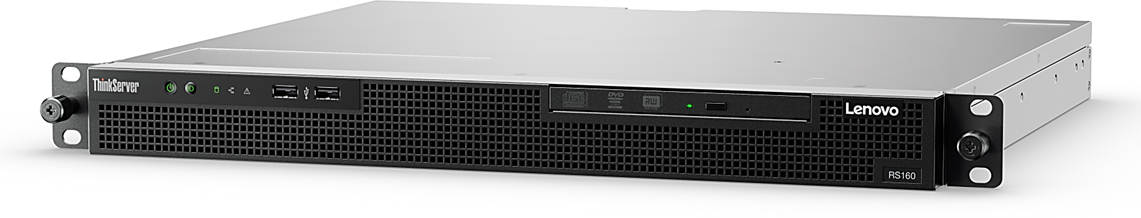 The Lenovo ThinkServer RS160 is the ideal right-sized, value-priced, single-socket 1U rack solution for small and medium businesses that need optimized performance and flexibility for future growth. With support for a memory capacity of up to 64 GB and internal storage of 24 TB, the RS160 is ideal for small- to medium-sized business, workgroups, distributed locations, and webscale workloads.